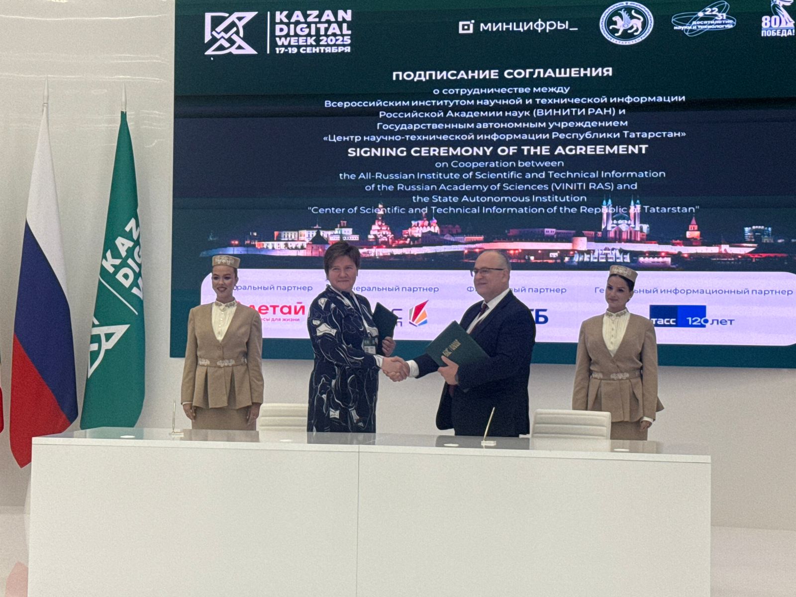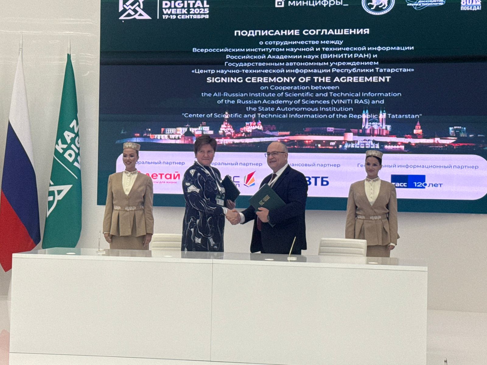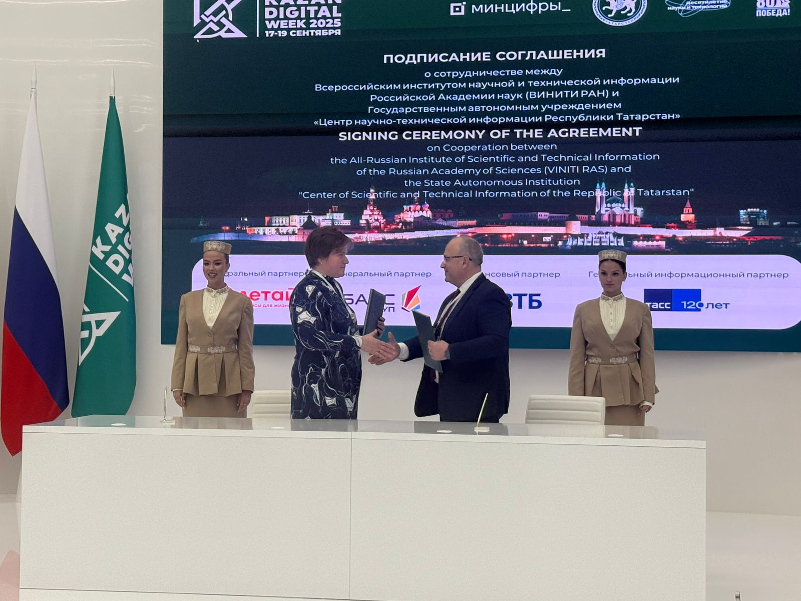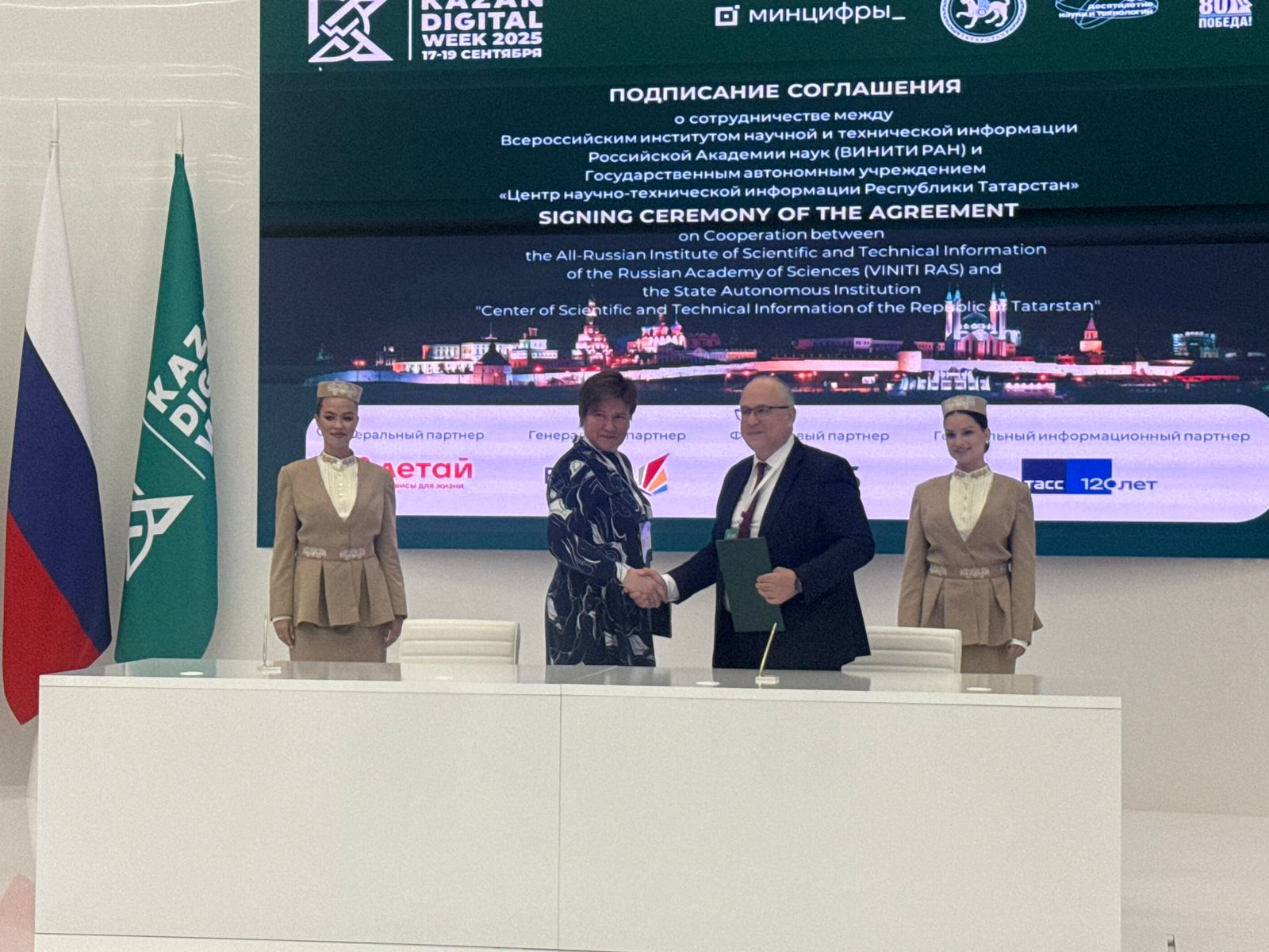 Кроме того, в рамках круглого стола состоялись церемонии подписания двух соглашений о сотрудничестве ГАУ «Центр научно-технической информации Республики Татарстан» с: